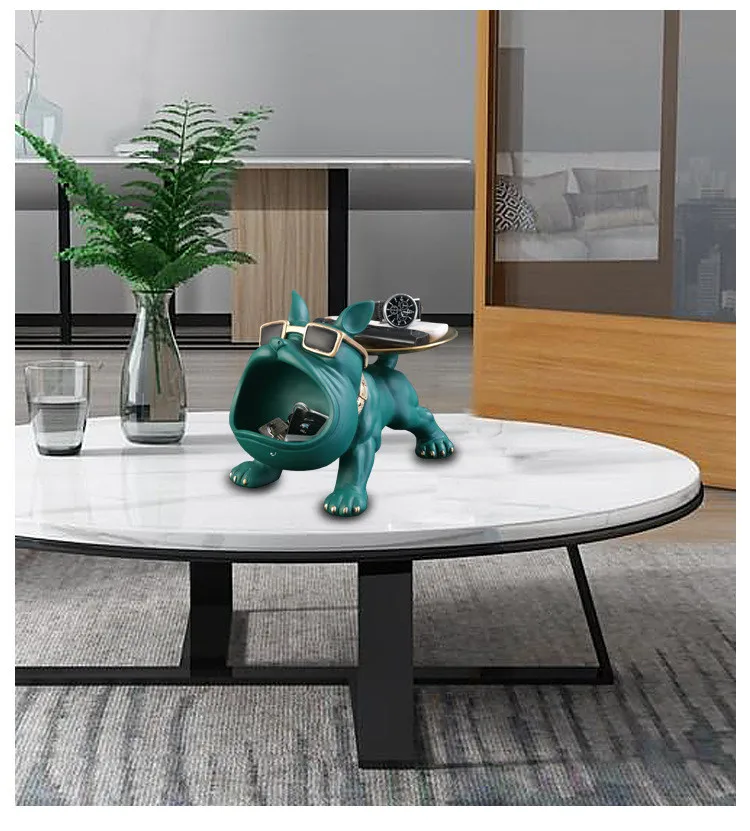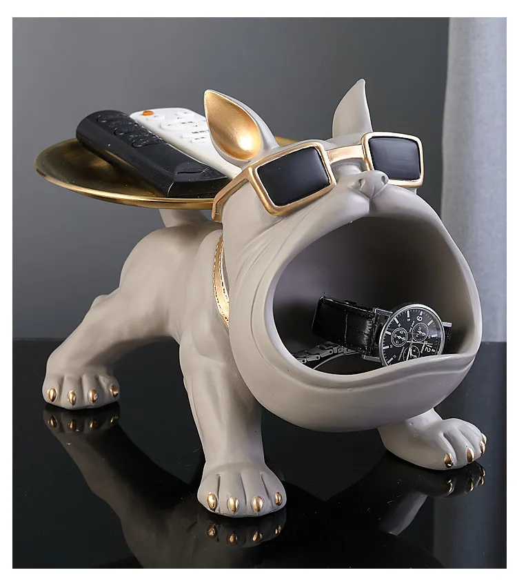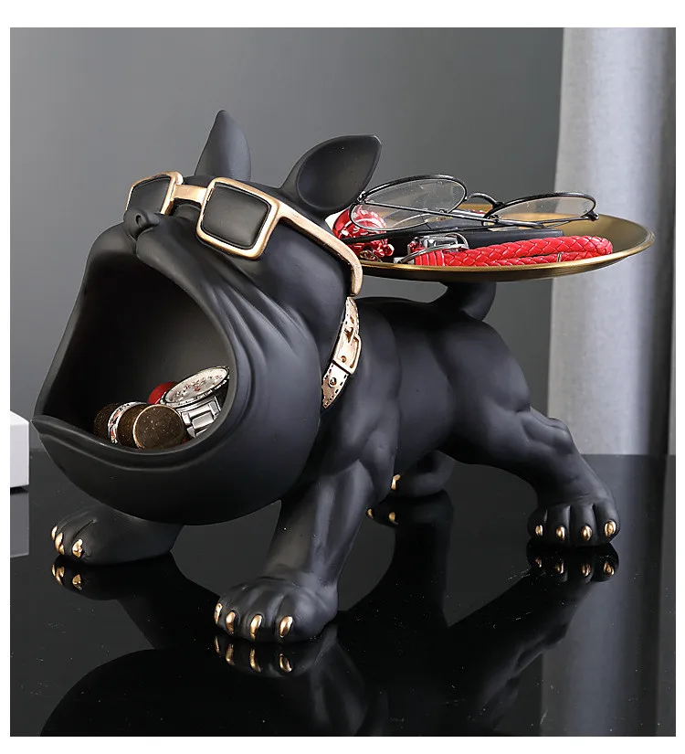 Nordic French Bulldog Butler Décor with Tray Big Mouth Dog Statue Storage Box Animal Resin Sculputre Figurine Home Décor Gift