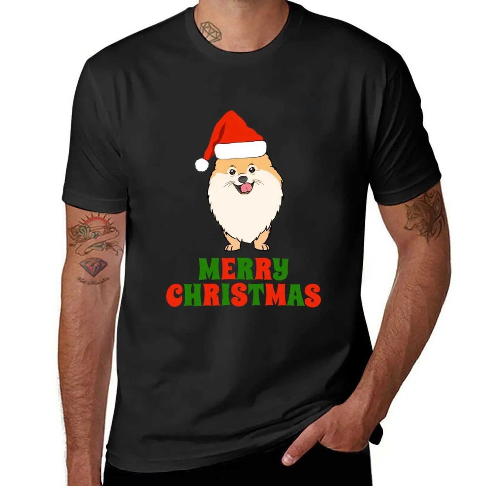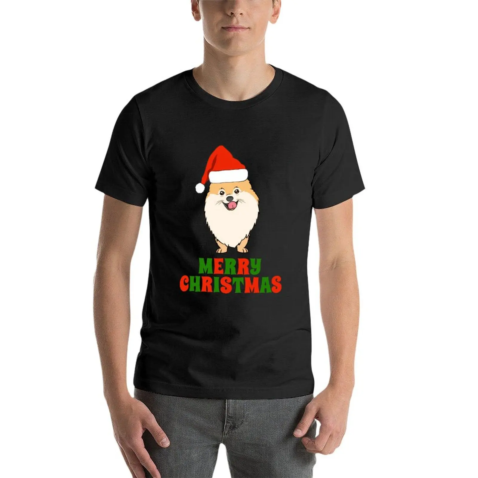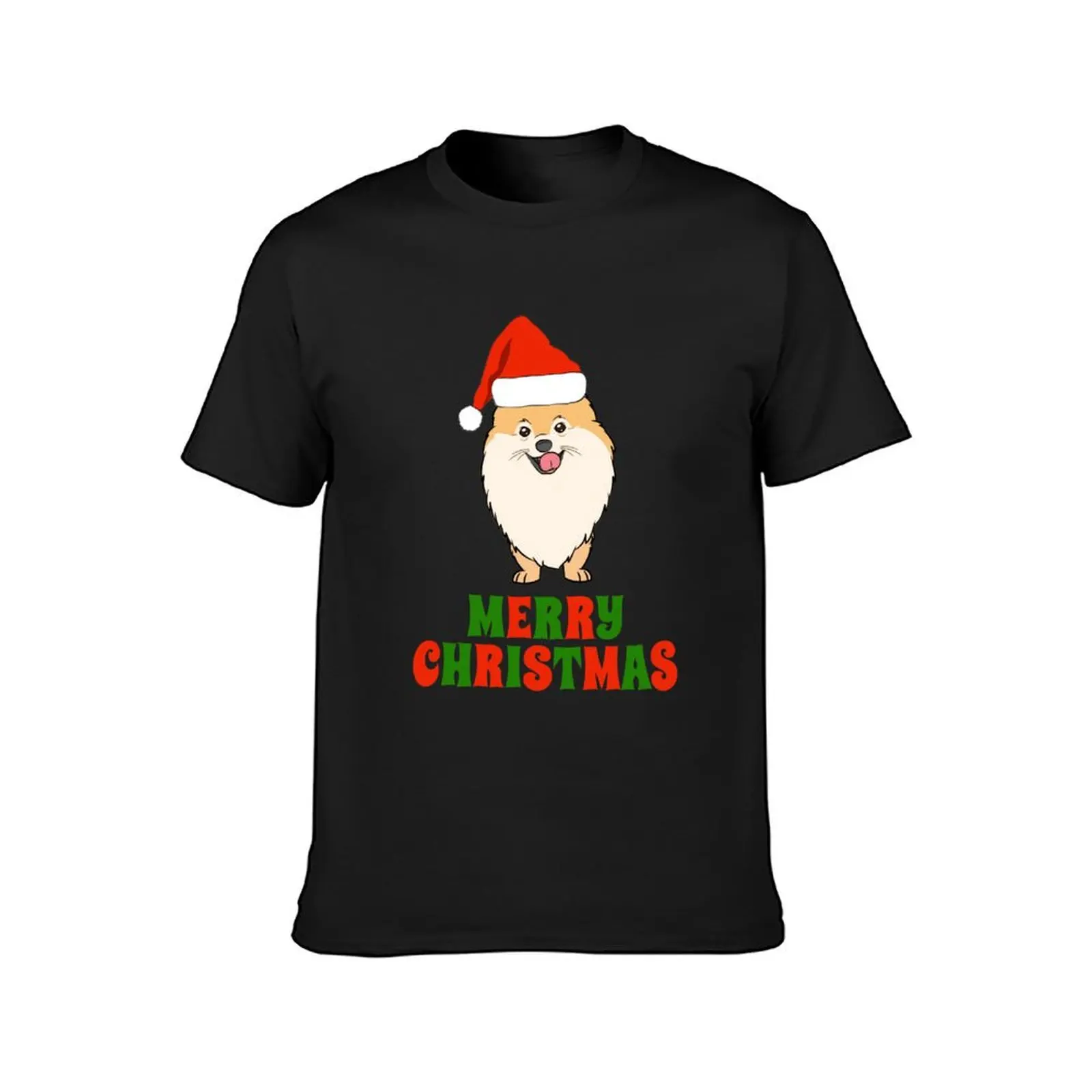 Festive Pomeranian Merry Christmas Tee Shirt T-Shirt hippie clothes blacks oversizeds for a boy Men's clothing